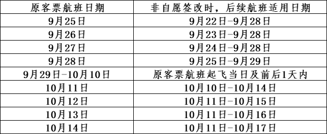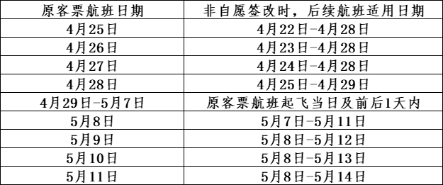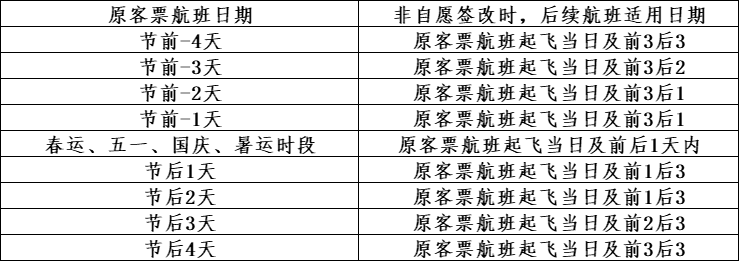 (2)特殊日期段非自愿变更/签转的后续航班适用时段(特殊日期段包含春运、五一、国庆、暑运)