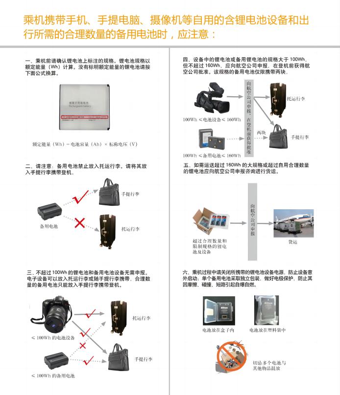 2.当额定能量大于 100Wh、小于或等于 160Wh 时必须经航空公司批准且每人限带两块。