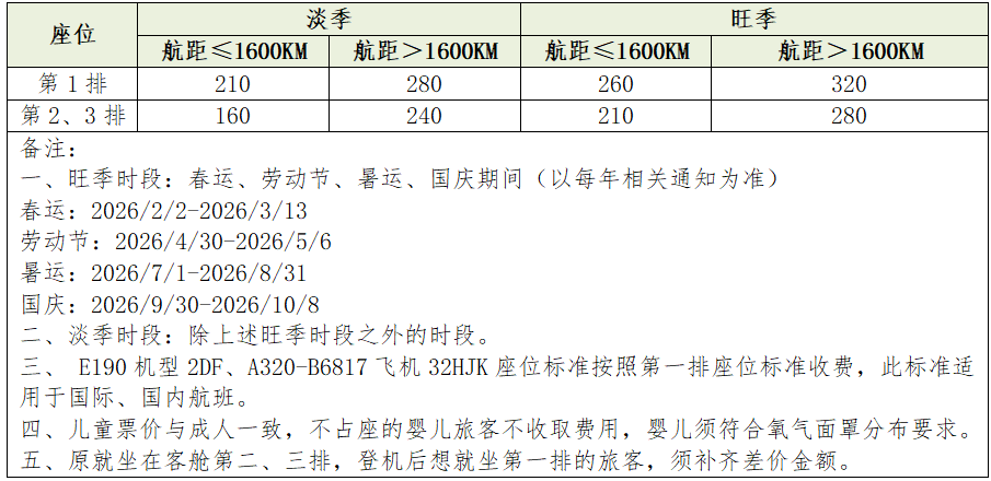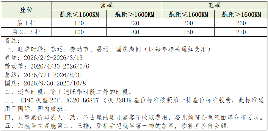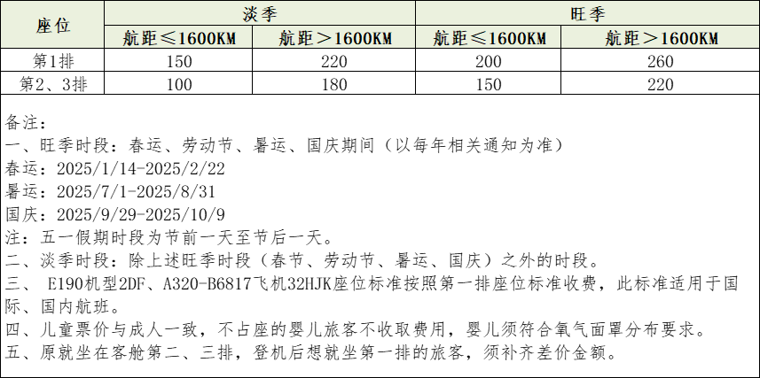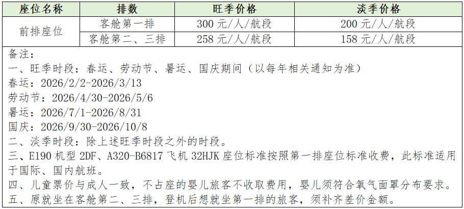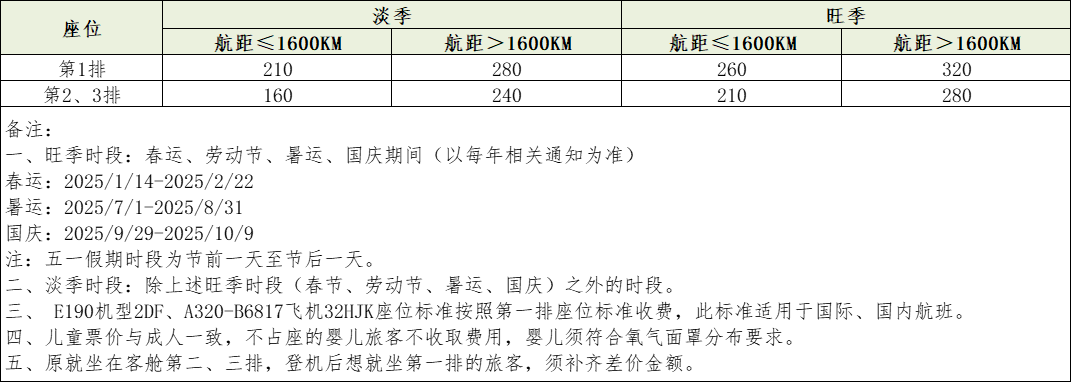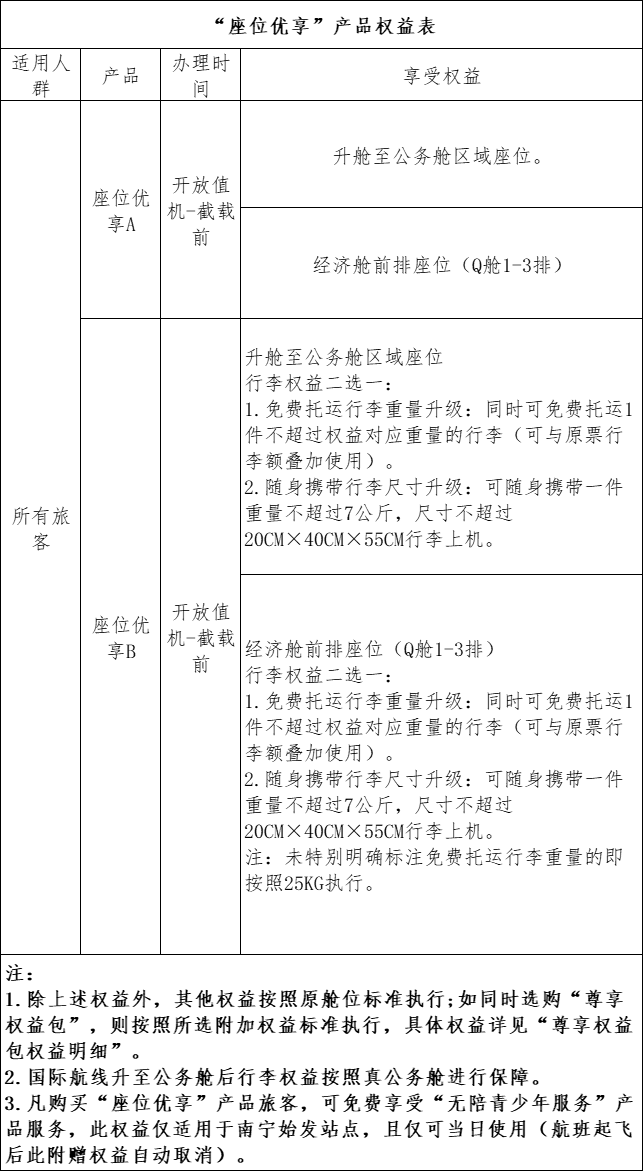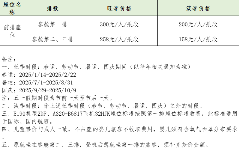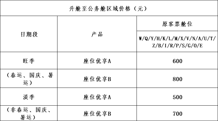 附:客舱升舱及购买前排座位产品权益介绍(旧版,2025年7月21日前执行)