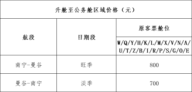 8、销售条件:在航班Q舱/D舱有大于1个座位的情况下开放销售升舱。