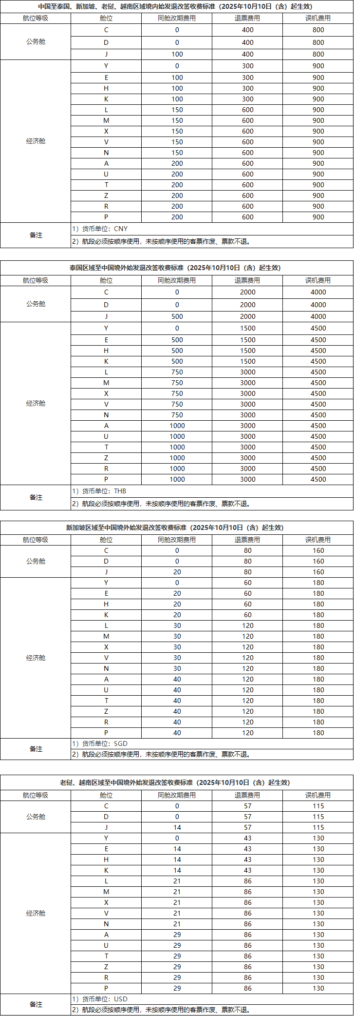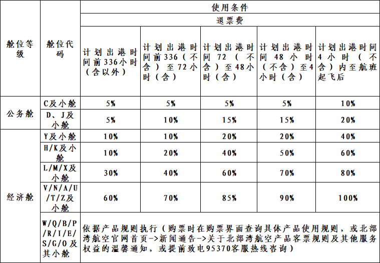 注:差异化退改规则(适用于品牌运价,Through Fare联运运价)可参阅公告